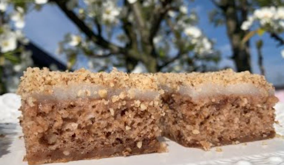 Sjedinite sastojke, ispecite biskvit sa orasima i pekmezom, premažite ga kremom od griza i pospite orasima za savršeno lagan i posan kolač.