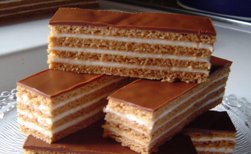Tijesto:1 cijelo jaje,150 g šećera,1 žličica sode bikarbone,50 g margarina,2 žlice mlijeka,2 žlice meda,450 g glatkog brašna,1 žlica kakao.Krema:4 dl mlijeka,2 i 1/2 žlice glatkog brašna,2 žlice šećera,1 vanilin šećer,2 žlice mljevenog šećera (ne prepune),150 g margarina.Čokoladna glazura:100 g čokolade za kuhanje,3 žlice ulja.