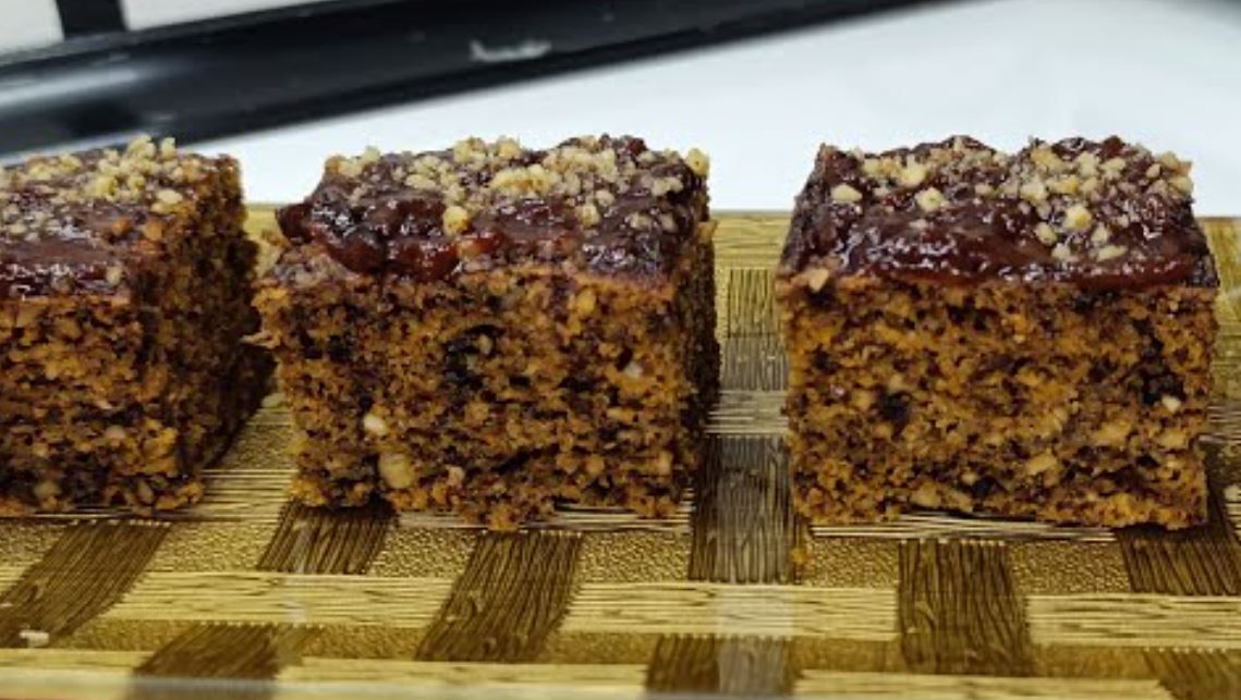 Sve suve sastojke sjediniti (brašno, griz, orahe, prašak za pecivo), dodati vodu, džem i aromu ruma pa dobro promešati. Smesu izliti u okrugli pleh prečnika 25 cm i peći u prethodno zagrejanoj rerni na 200°C oko 30 minuta. Pečen kolač premazati džemom po izboru i posuti mlevenim orasima.