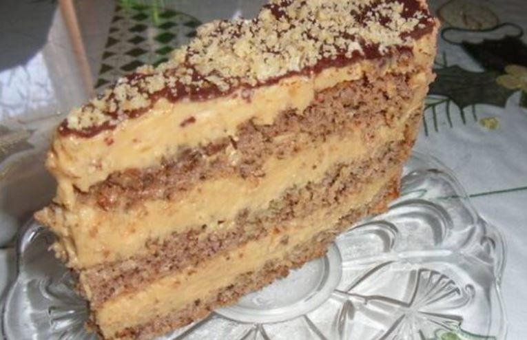 Biskvit premazati kremom i posuti mljevenim orasima. Ukrasite po želji.
