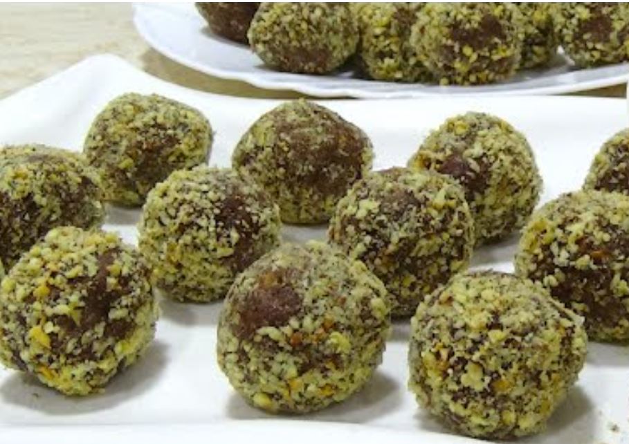 Od smese praviti kuglice i valjati ih u mlevene orahe.