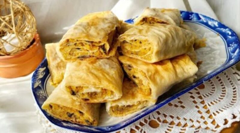 Proprži seckani praziluk, dodaj narendani krompir, začini solju i biberom, filuj kore, urolaj ili složi u tepsiju, prelij mešavinom ulja i mineralne vode, pa peci na 200°C oko 30 minuta dok pita ne porumeni i postane hrskava.