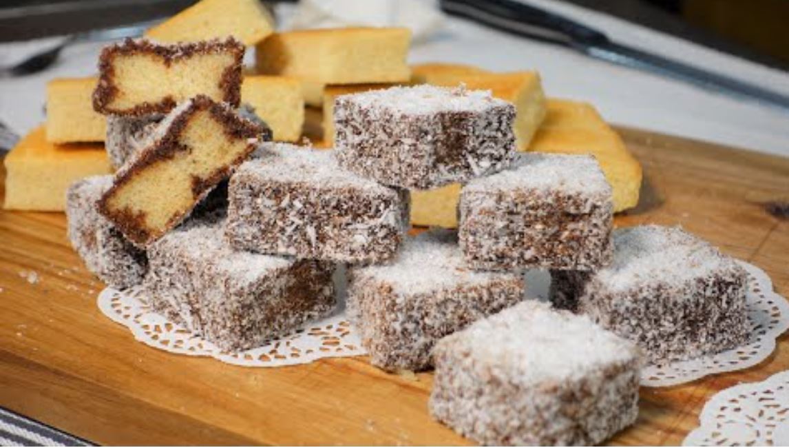 Umutite sve sastojke za biskvit, ispecite ga, zatim umočite kocke u topli kakao preliv i uvaljajte u kokos – savršena poslastica bez mleka i jaja!