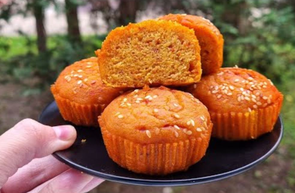 Izliti testo u kalup za mafine sa korpicama za pečenje. Puniti ih skoro do kraja, posuti susamom i peći u zagrejanoj rerni na 180°C 20 minuta BEZ VENTILATORA.