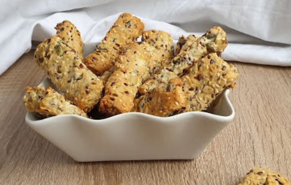 Sve suve sastojke pomešati, dodati ulje i vodu, zamesiti testo, oblikovati štapiće i peći dok ne postanu zlatno hrskavi.