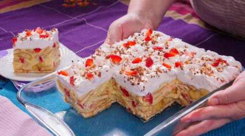 Brzi kolač sa jagodama i bananama koji ćete napraviti za 15 minuta i ostaće vam puno vremena za odmor i uživanje! Jednostavna vanila u kombinaciji sa keksom, jagodama i bananama čini ovu kombinaciju klasikom dobrih spojeva kada se radi o voćnim kolačima. Probajte što pre!