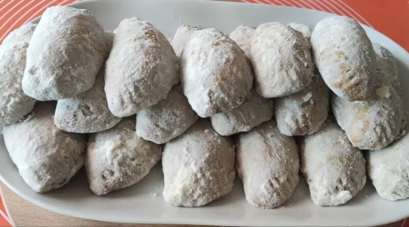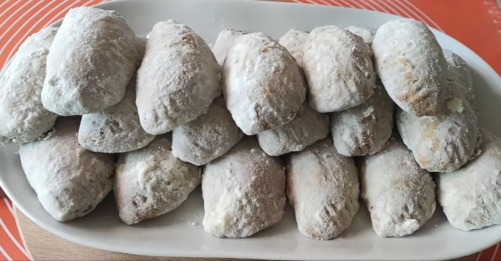 Zamesite testo od brašna, ulja, vrele vode, šećera, vanilin šećera, praška za pecivo i oraha, oblikujte kiflice s filom od pekmeza i oraha, pecite 20 minuta na 200°C i uvaljajte u šećer u prahu.
