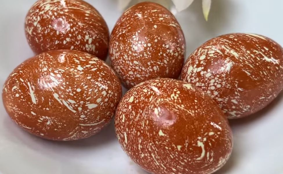 Ostavite jaja u boji najmanje 2 sata, a može i preko noći za intenzivniji efekat.