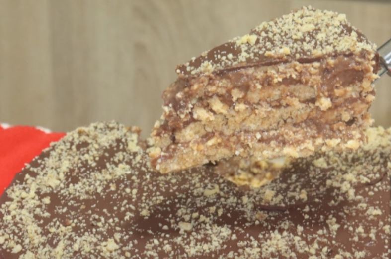 Mrvičasti keks, koji koristite kao biskvitni deo podelite u 3 ili 4 dela zavisi koje veličine koristite kalup. Ja sam koristila 26 cm. i delila sam u 3 dela.