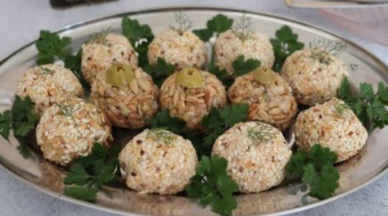 Izdrobite kuvani krompir, pomešajte sa tunjevinom, posnim margarinom, seckanim krastavčićima i maslinama, začinite po ukusu, oblikujte kuglice i uvaljajte ih u pečeni susam ili suncokret za brzo, dekorativno i ukusno posno predjelo.