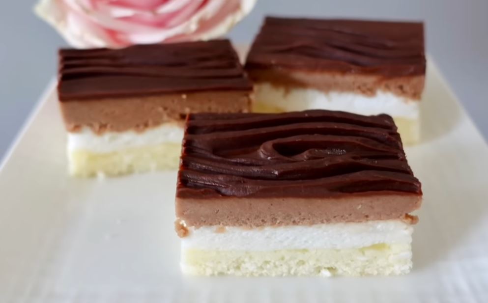 Ispeku se dve kore (tamna i bela), pripremi se čokoladna krema od žumanaca i Nesquik-a, sve se filuje i prelije ganache-om za savršeno ukusan i dekorativan kolač.