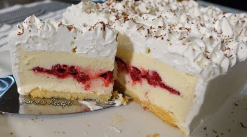 Predivan lagani kolač. Tako kremast i ukusan sa dodatkom malina a može se koristiti i drugo voće koje vama najviše odgovara. Lagana priprema , idealan za sve vrste slavlja. Napravite i iznenadite svoju porodicu. Uvek dobrodošao i tako osvežavajući kolač za vreme toplih dana.