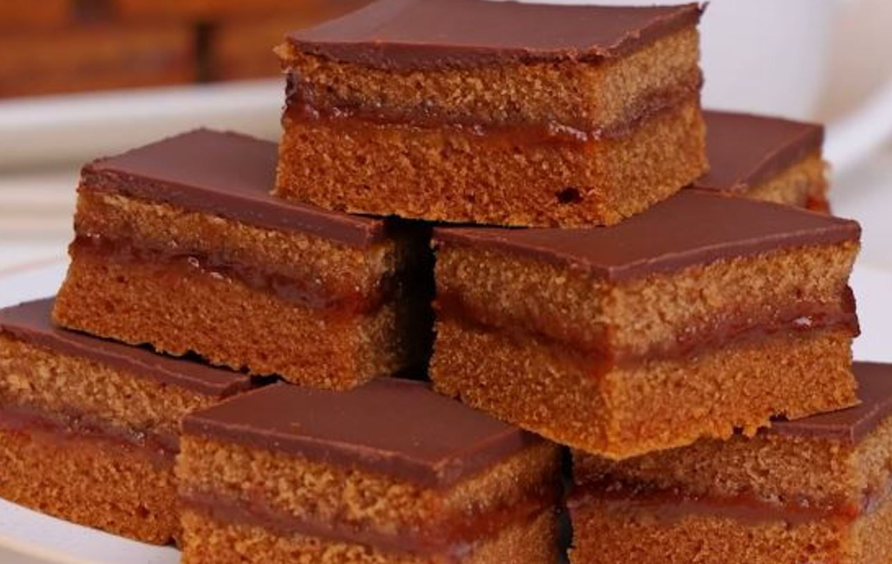 Pomešajte brašno, šećer, sodu bikarbonu, cimet i kakao prah, pa im dodajte med i džem od kajsije. Nalijte ulje i kiselu vodu, sve mešajući sjedinite, pa polovinu smese izlijte u papirom za pečenje obloženi kalup dimenzija 32x22cm. To pecite u zagrejanoj rerni na 170 stepeni 15-ak minuta, izvadite, premažite džemom od kajsija koji ste prethodno pomešali sa izrendanom crnom čokoladom, prelijte ostatkom smese za biskvit, pa pecite kolač jos 20-25 minuta.