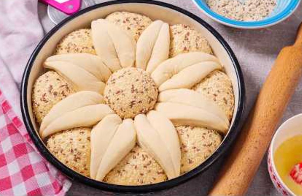 Zamesite testo od kvasca, mleka, vode, ulja, brašna, soli i šećera, ostavite da naraste, oblikujte pogaču kao cvet, premažite je jajetom i mlekom, pospite semenkama, pa pecite do zlatno-smeđe boje.