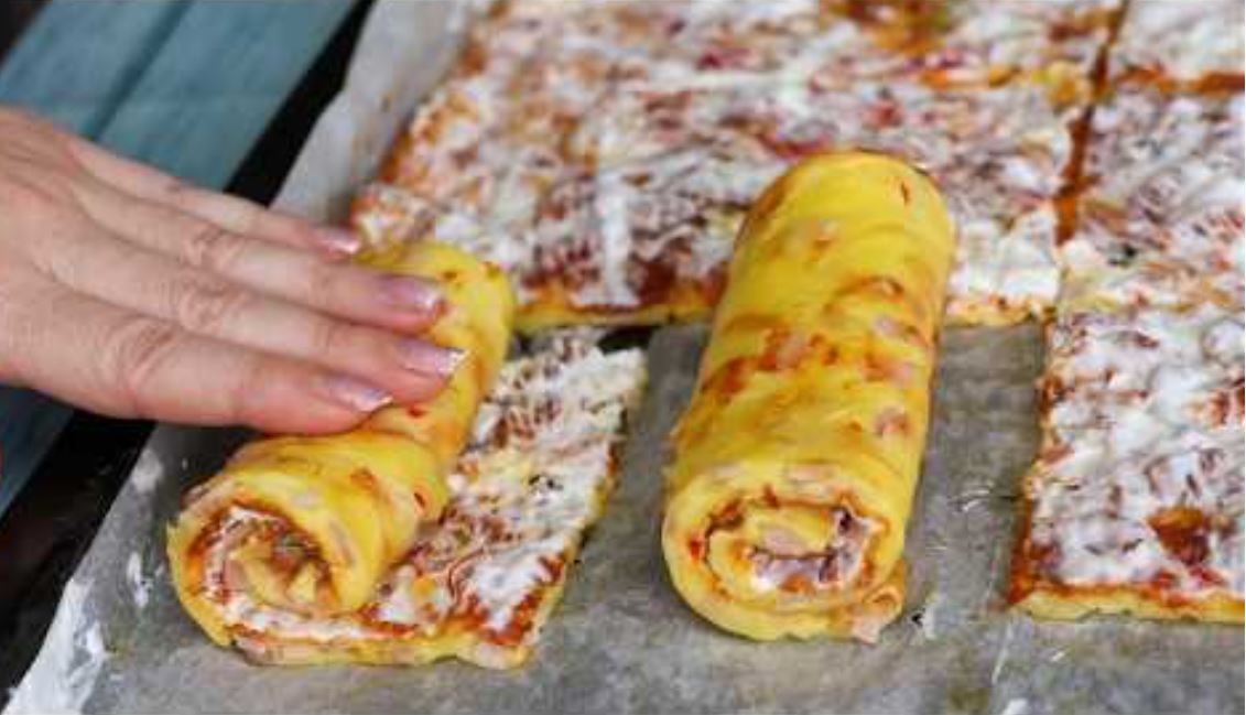Umutite jaja sa solju, mlekom, uljem i brašnom, dodajte povrće, šunku i sir, sve izlijte u pleh, ispecite u rerni 30 minuta na 200°C, premažite kiselom pavlakom, uvijte i poslužite
