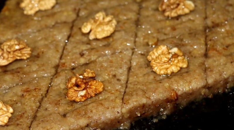 Zamesite testo od ulja, vode, brašna, praška za pecivo i oraha, oblikujte i ispecite kolač, pa prelijte vrućom agdom od šećera i vode.