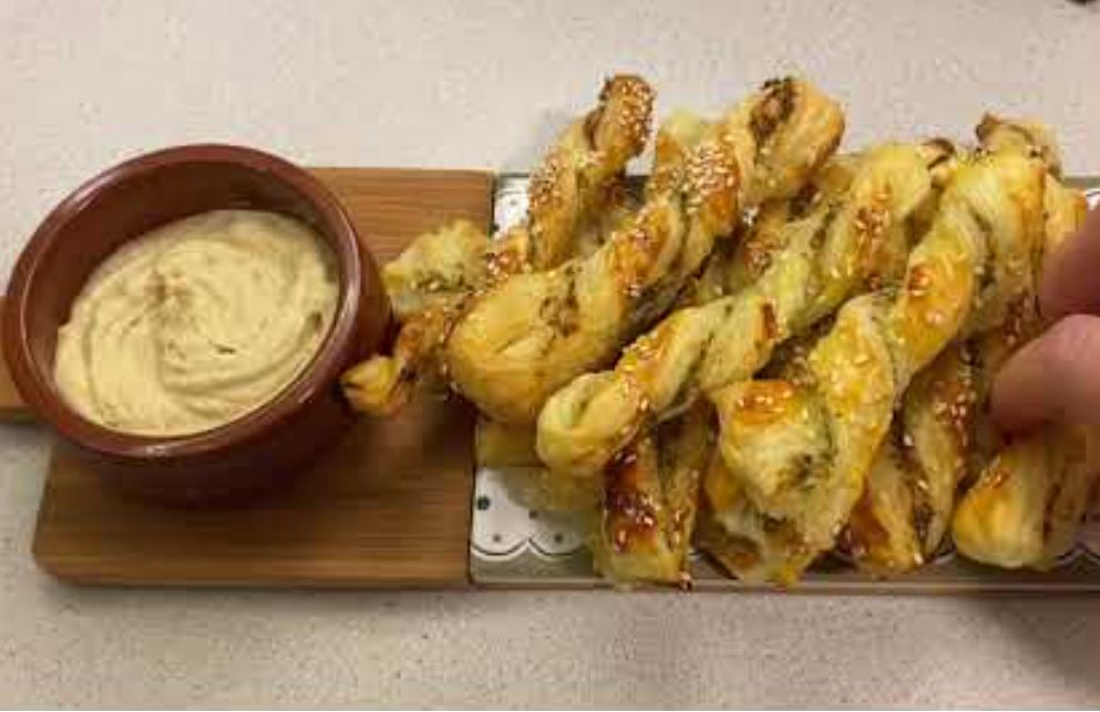 Margarin ili puter otopite, dodajte začine i promiješajte. Premažite lisnato tijesto, preklopite na pola i sijecite na trakice koje ćete potom uviti, kao na videu.