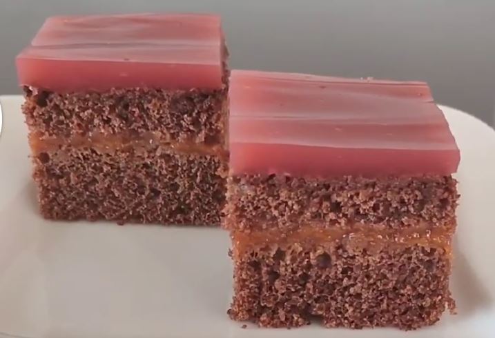U jednoj posudi sjediniti brašno, šećer, kakao, cimet, prašak za pecivo i sodu, dodati ulje, vodu i džem, sve promešati bez miksera, izliti u pleh i peći, a potom preliti filom od pudinga kuvanog u soku i premazati džemom i čokoladom.