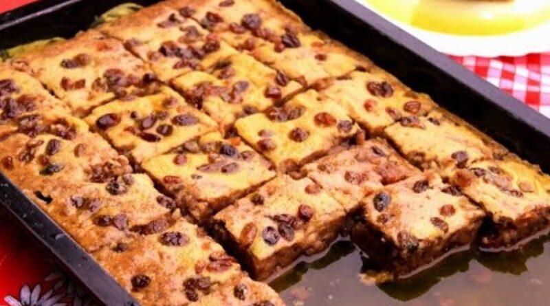 Ostavite dase kolač prohladi oko 15 minuta, isecite kocke i pustite da još upije sirup. Možete još pečen kolač izbockati čačkalicom da bolje upije.