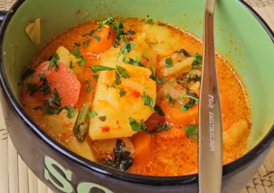 Prodinstajte crni luk, šargarepu i papriku, dodajte krompir, začine, ajvar i instant od pečuraka, nalijte vodom i kuvajte dok sve ne omekša – savršen posni obrok za dane posta!