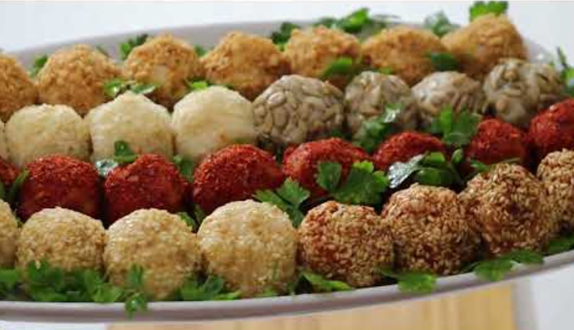 5. vrsta kuglica u polovinu smese broj 4 dodajemo kašiku kečapa a u susam za valjanje malo mlevene crvene paprike