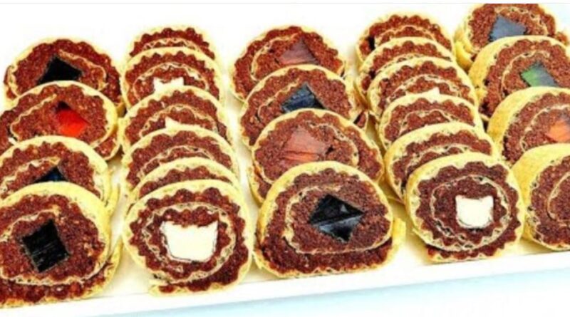 Prokuvajte mleko sa šećerom i vanilin šećerom, dodajte margarin, mleveni keks, orahe, čokoladne bananice i žele bombone, uvijte u oblande i premažite čokoladom – savršeno za 10 minuta!