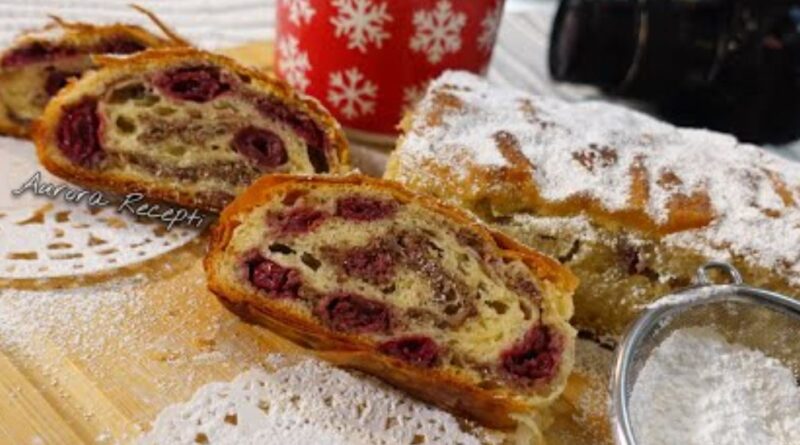 Jedinstveni spoj namirnica koji će osvojiti vaše čulo ukusa. Ne oduzimajući vam puno vremena u pripremi a napravićete preukusnu poslasticu. Štrudla od gotovih kora sa višnjama i mlevenim orasima. Tako lepog i dekorativnog izgleda koji će ukrasiti vašu trpezu. Pogodna štrudla za sve vrste slavlja i proslava. Napravite i iznenadite vašu porodicu i prijatelje.