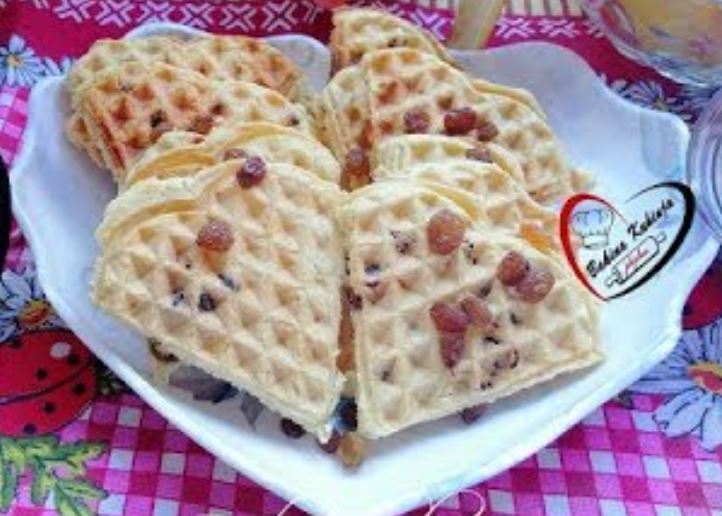 Pomešajte brašno, margarin, kiselu vodu, izgnječenu bananu, suvo grožđe, prašak za pecivo i šećere, oblikujte u vafl kekse i pecite dok ne dobiju zlatnu boju.