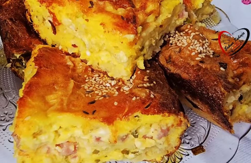250 g sitnog sira (svježeg kravljeg) 1 jaja po želji 1 kašika kisele pavlake (20% masnoće) 2 kašikeml neutralnog ulja zeleno perje mladog luka) 1/2 kašičice belog luka u prahu (ili 1 sitno iseckan svežeg belog luka) Malo soli i bibera po ukusu i 100 gr seckane šunke