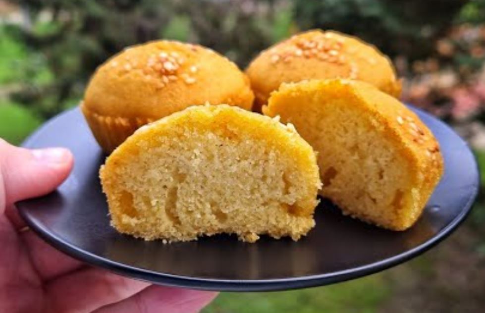 Izliti testo u kalup za mafine sa korpicama za pečenje. Puniti ih skoro do kraja, posuti susamom i peći u zagrejanoj rerni na 180°C 20 minuta BEZ VENTILATORA.