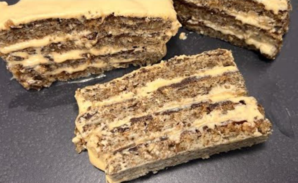 kada se oba biskvita ispeku preseci na pola da se dobiju 4 biskvita