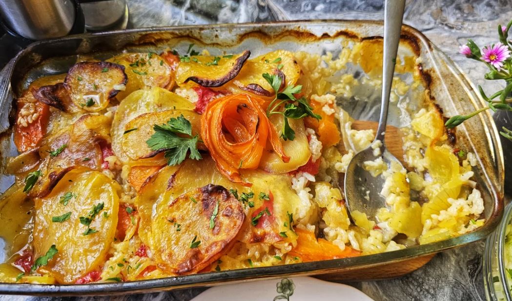 Otkrijte tajnu najukusnijeg krompira koji će vas ostaviti bez daha! Ovaj recept donosi savršenu kombinaciju mekog krompira, slatkog luka i šargarepe, sa dodatkom belog luka i pirinča koji upija sve arome. Pečen pod folijom do savršenstva, a zatim zapečen do zlatne hrskavosti, ovaj krompir je toliko sočan i kremast da vam hleb neće ni trebati. Idealan je kao posno jelo, a najbolje se slaže uz laganu supicu i svežu salatu. Pripremite se za gastronomski užitak koji će vas naterati da ogrebete tepsiju!