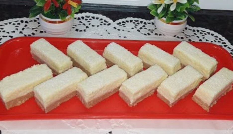 Skuhajte vodu sa šećerom i vanilin šećerom, dodajte margarin da se otopi, pa umiješajte mljeveni keks. Masu utisnite u kalup. Za bijeli sloj, prokuhajte vodu sa šećerom, otopite bijelu čokoladu i margarin, pa dodajte mlijeko u prahu i kokos. Dobro izmiješajte i nanesite preko tamnog sloja. Ohladite, isijecite i poslužite.
