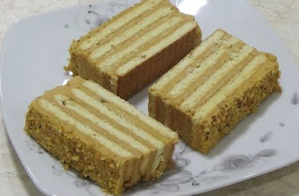 Keks umakati u sok i ređati na tacnu kao prvu koru. Preko keksa naneti prvi sloj fila. Preko fila poređati drugi sloj keksa umočenog u sok. Tako raditi do kraja, da bude četiri sloja keksa i četiri sloja fila. Ostaviti malo fila da se torta premaže sa strane. Tortu na kraju posuti mlevenim orasima i staviti u frižider da se dobro ohladi.