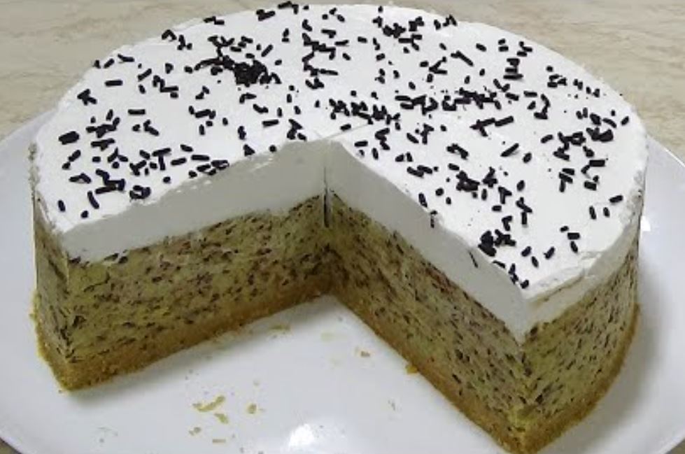 Umutiti ohlađen puding. Umutiti margarin sa šećerom u prahu. Dodavati po malo umućenog margarina u puding uz stalno mućenje. Dodati aromu vanile i sve malo umutiti. Dodati i 4 kašike umućenog šlaga i umutiti. Sipati mlevene orahe i rendanu čokoladu i sve izmešati.