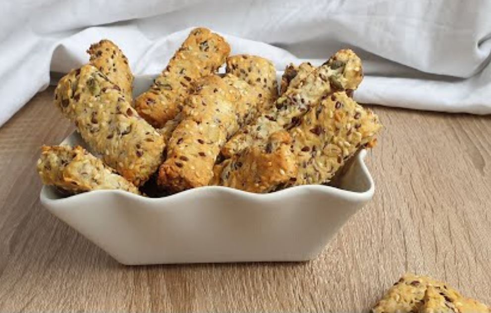 Umešajte semena i ovsene pahuljice sa brašnom, praškom za pecivo i solju, dodajte ulje i vodu, zamesite glatko testo, razvucite, isecite štapiće i pecite dok ne postanu zlatno hrskavi.