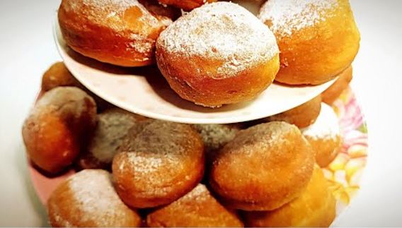 U mlakoj vodi razmutite kvasca sa kašikom šećera, zatim pomešajte sa kisele vode, ulja, šećera, vanil šećera, praška za pecivo, gustina i brašna, zamesite glatko testo, oblikujte krofne, pržite ih u dubokom ulju dok ne porumene i uvaljajte u prah-šećer.