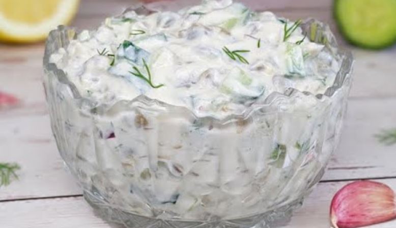 Priprema: Beli luk očistite, pa cele čenove propržite na zagrejanom ulju. Usitnite ih viljuškom. Krastavac sitno isecite, pa stavite u posudu i dodajte mleveni beli luk, kuvano i proceđeno sočivo, kao i jogurt, krem sir, rendanu koricu limuna i sitno seckani ljubičasti luk. Posolite i pobiberite, pa dobro promešajte. Na kraju dodajte i sitno seckanu mirođiju i još jednom promešajte.