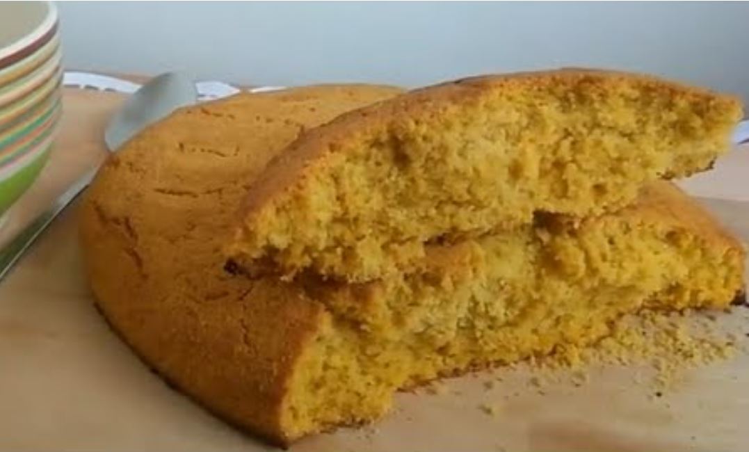 Pomešajte kukuruzno i malo belog brašna sa uljem, šećerom, solju, praškom za pecivo i toplom vodom, te pecite dok ne porumeni.