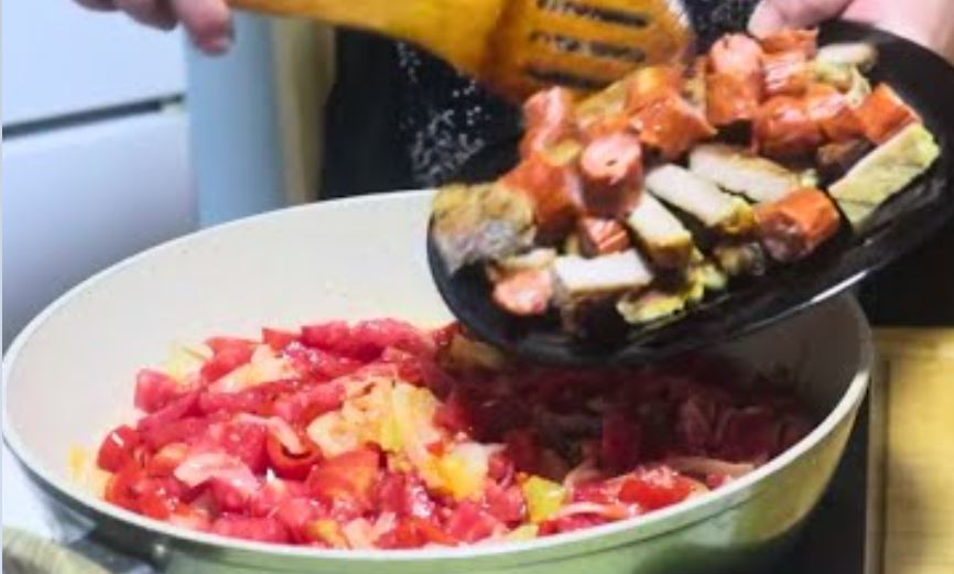zajedno sa paradajzom, ako koristite meso sa roštilja, dodajte i narezano svo meso koje vam je preostalo.