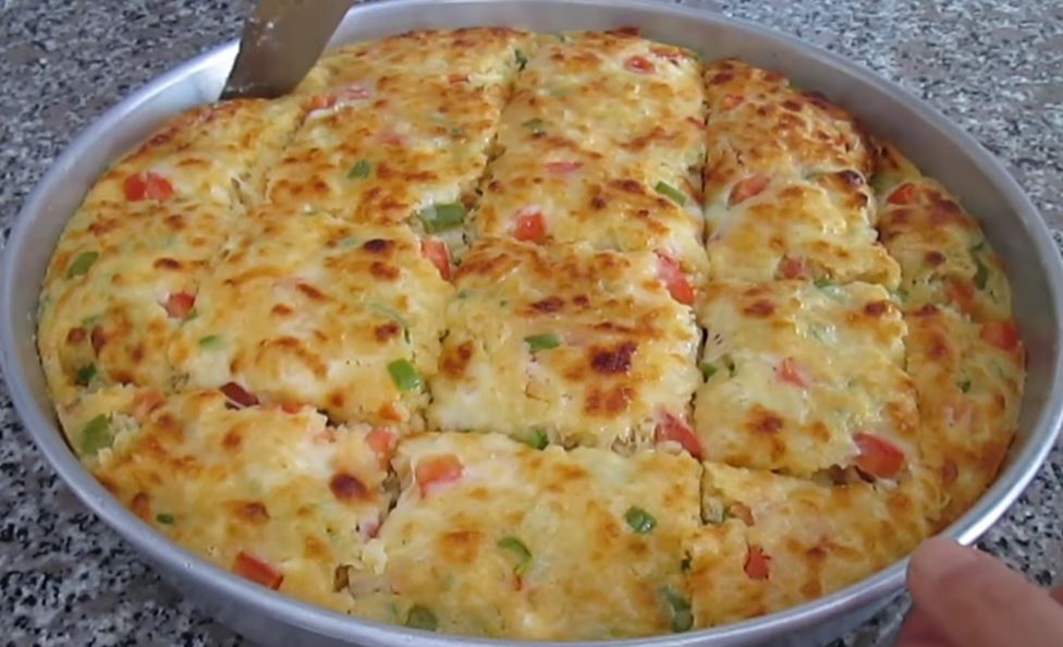 Priprema: Krompir, paradajz, zelenu papriku i zeleni luk isecite na sitne kockice. Paradajzu skinite kožicu. Zatim umutite jaja, pa dodajte povrće, so, seckanu fetu, ulje i mleko. Dobro promešajte. Na kraju dodajte brašno i prašak za pecivo. Kalup prečnika 32 cm premažite puterom. Sipajte smesu, pospite rendani sir preko i pecite na 200°C nekih 30-35 minuta.