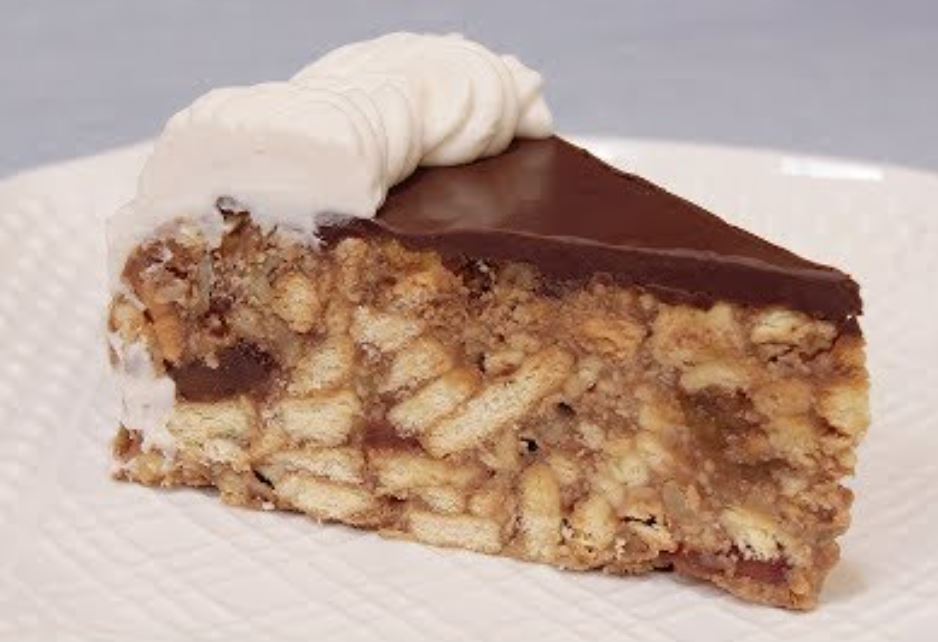 3 kašike kristal šećera, 80 grama pudinga od vanile, 100 grama kakao krem table, 200 grama posnog margarina, 200 grama posnih žele bombona, 200 grama oraha500 grama posnog keksa.