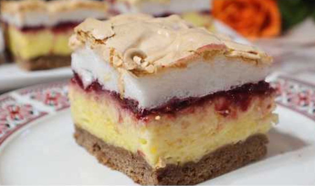 Kolač koji pleni svojim raskošnim izgledom i neodoljivim ukusom. Spoj sastojaka je izvanredan. Prhki donji sloj, zatim kremasti fil, maline i na kraju sloj od belanaca!