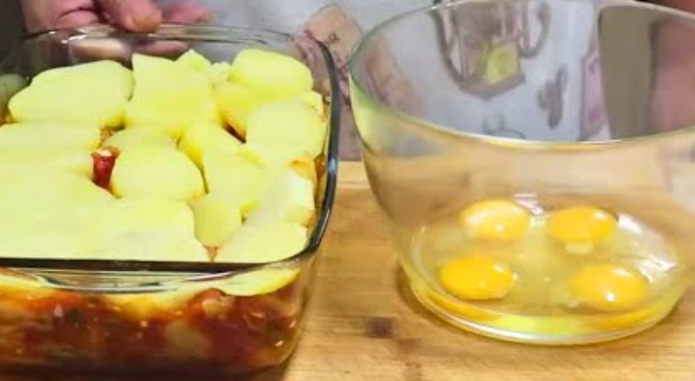 Poslagano i preliveno zapeči u zagrejanoj rerni na 200c./25 do 30min.