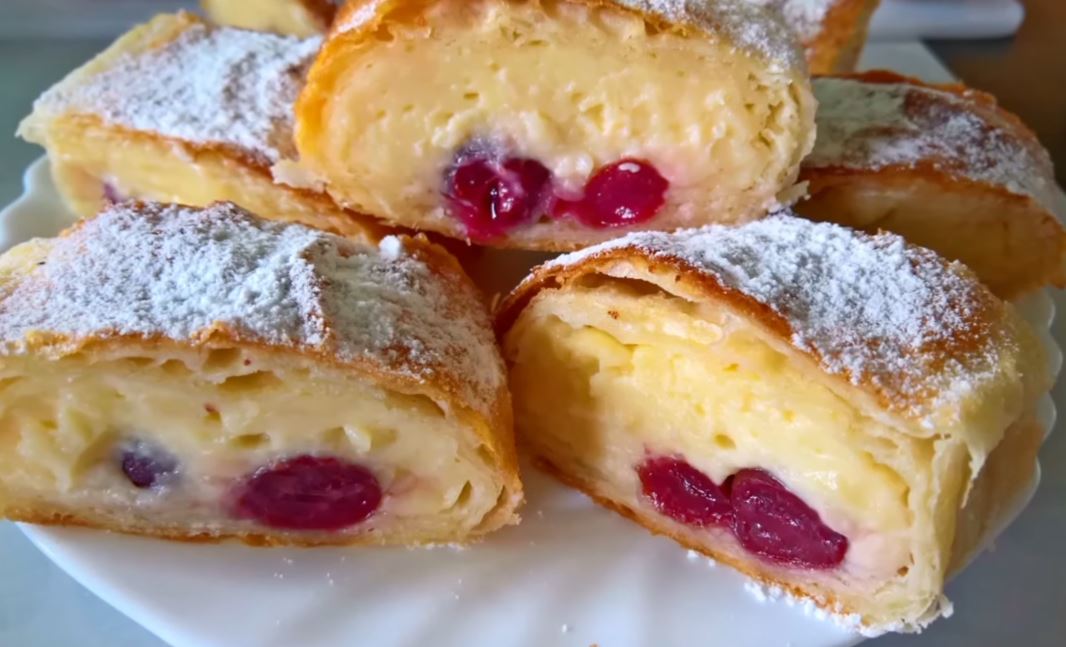 Štrudla sa višnjama i vanil kremom je poslastca kojoj je teško odoleti. Kombinacija slatko kiselog ukusa osvaja sva čula.