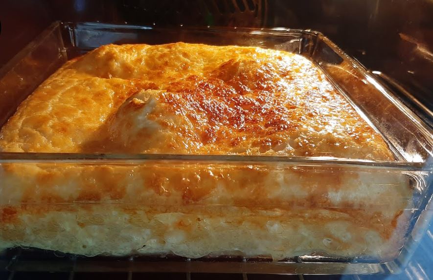 Priprema: Jaja malo posolite, pa umutite žicom. Zatim sipajte mleko i dobro promešajte (oko minut). Na kraju dodajte rendani sir i sjedinite. Tepsiju premažite istopljenim puterom i sipajte smesu. Pecite na 200°C.