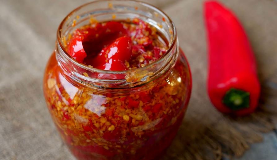 Priprema: Papriku očistite od semenki, pa je isecite na deblje štapiće. U pleh za pečenje stavite aluminijumsku foliju koju ste namazali uljem. Poređajte papriku, pokrijte drugim parčetom folije i stavite da se peče na 200 stepeni oko pola sata. Ljute papričice nemojte da čistite od semenki, samo im uklonite peteljke i isecite na manje komade. Stavite ih u secka zajedno sa očišćenim belim lukom i sve sameljite da bude što sitnije.