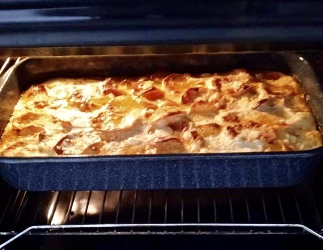 U dublju vatrostalnu posudu poređajte red krompira, zatim red mesa dok se sastojci ne potroše, a poslednji red treba da bude krompir.