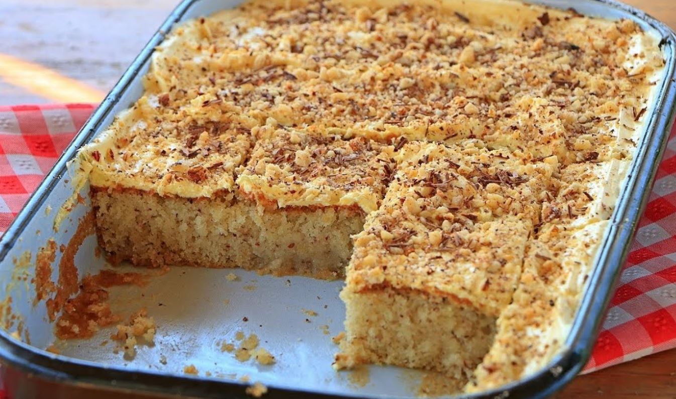 Sastojci i priprema: 4 jaja; 1 čaša šećera; 1 čaša brašna; 1 čaša mlevenih oraha ili lešnika; 2 čaše griza; 1 čaša ulja; 1 čaša mleka; 1 prašak za pecivo.