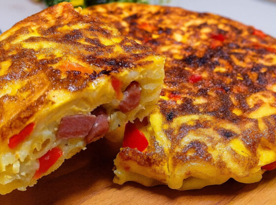 Skuvajte makarone, pomešajte ih sa jajima, sirom, seckanom paprikom, proprženim lukom i viršlama, pa smesu ispecite u tiganju dok ne porumeni s obe strane.